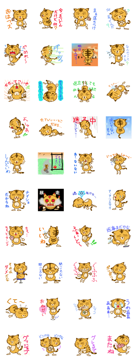 虎のとらじろう とらちゃん コメントをどうぞ これは猫ですか?いいえ虎です。表情豊かな虎のとらじろうがあなたの気持ちを代弁してくれる事でしょう。 このスタンプどう思う?!↓クリックで投票♪好き (0)かわいい (0)かっこいい (0)おもしろい (0)使いやすそう (0)欲しい (0)萌え (0)ほっこりする (0)おしゃれ (0)ゆるい (0)こわい (0)ウザい (0)キモい (0)ムカつく (0)持ってる (0)癒される (0)セクシー (0)個性的 (0)私は買わない (0)誰かプレゼントして! (0) 購入・プレゼントする Facebookでシェア Twitterでシェア