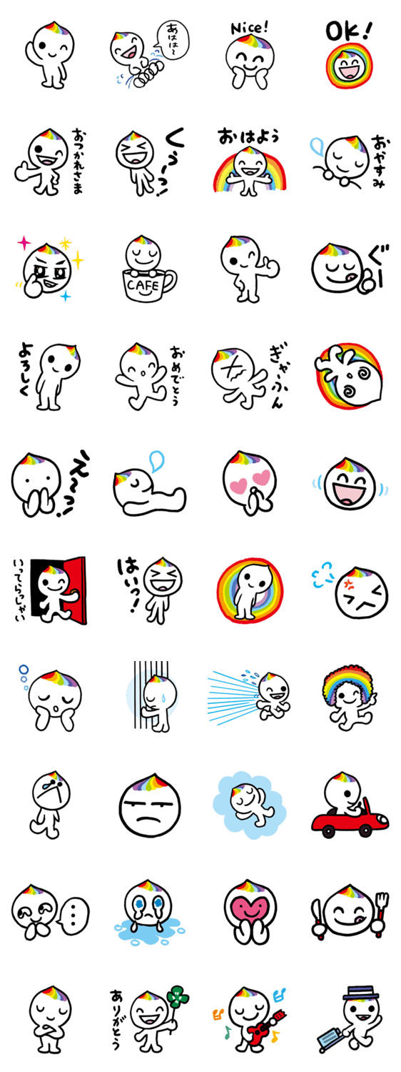 虹みっけ2 おさない まこと コメントをどうぞ 虹色あたまのキャラクター、名前は みっけ。虹を見た時に幸せを感じるように、虹がかかったような会話を楽しもう。 このスタンプどう思う?!↓クリックで投票♪好き (0)かわいい (0)かっこいい (0)おもしろい (0)使いやすそう (0)欲しい (0)萌え (0)ほっこりする (0)おしゃれ (0)ゆるい (0)こわい (0)ウザい (0)キモい (0)ムカつく (0)持ってる (0)癒される (0)セクシー (0)個性的 (0)私は買わない (0)誰かプレゼントして! (0) 購入・プレゼントする Facebookでシェア Twitterでシェア