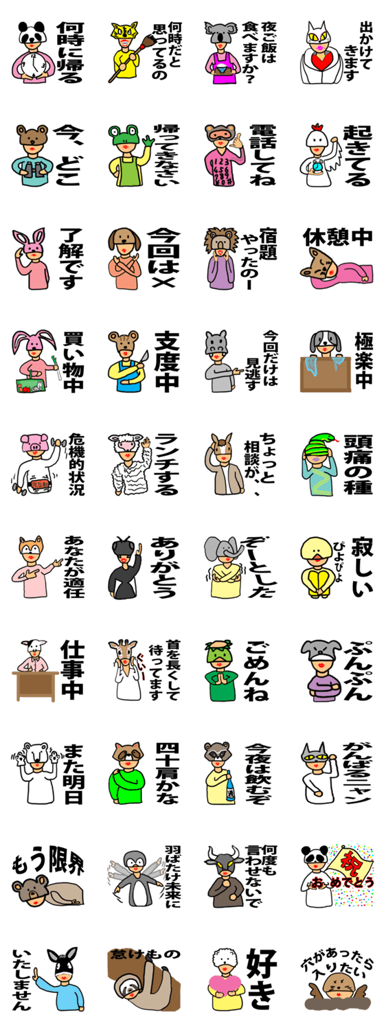 被り物大好きかあさん MZ Zone コメントをどうぞ 被り物が大好きなかあさんの毎日。沢山の動物の被り物が出てきます。 このスタンプどう思う?!↓クリックで投票♪好き (0)かわいい (0)かっこいい (0)おもしろい (0)使いやすそう (0)欲しい (0)萌え (0)ほっこりする (0)おしゃれ (0)ゆるい (0)こわい (0)ウザい (0)キモい (0)ムカつく (0)持ってる (0)癒される (0)セクシー (0)個性的 (0)私は買わない (0)誰かプレゼントして! (0) 購入・プレゼントする Facebookでシェア Twitterでシェア
