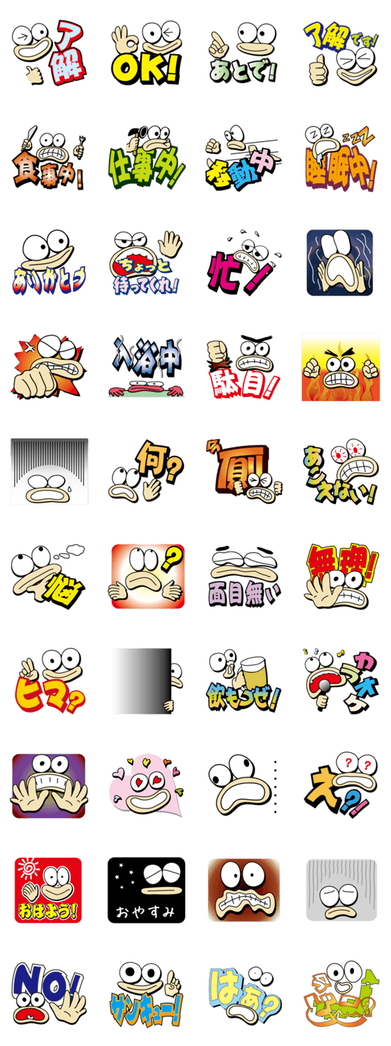 親父の顔 やっさん コメントをどうぞ 親父の顔の喜怒哀楽をデフォルメしてみました。使ってみてください。 このスタンプどう思う?!↓クリックで投票♪好き (0)かわいい (0)かっこいい (0)おもしろい (0)使いやすそう (0)欲しい (0)萌え (0)ほっこりする (0)おしゃれ (0)ゆるい (0)こわい (0)ウザい (0)キモい (0)ムカつく (0)持ってる (0)癒される (0)セクシー (0)個性的 (0)私は買わない (0)誰かプレゼントして! (0) 購入・プレゼントする Facebookでシェア Twitterでシェア