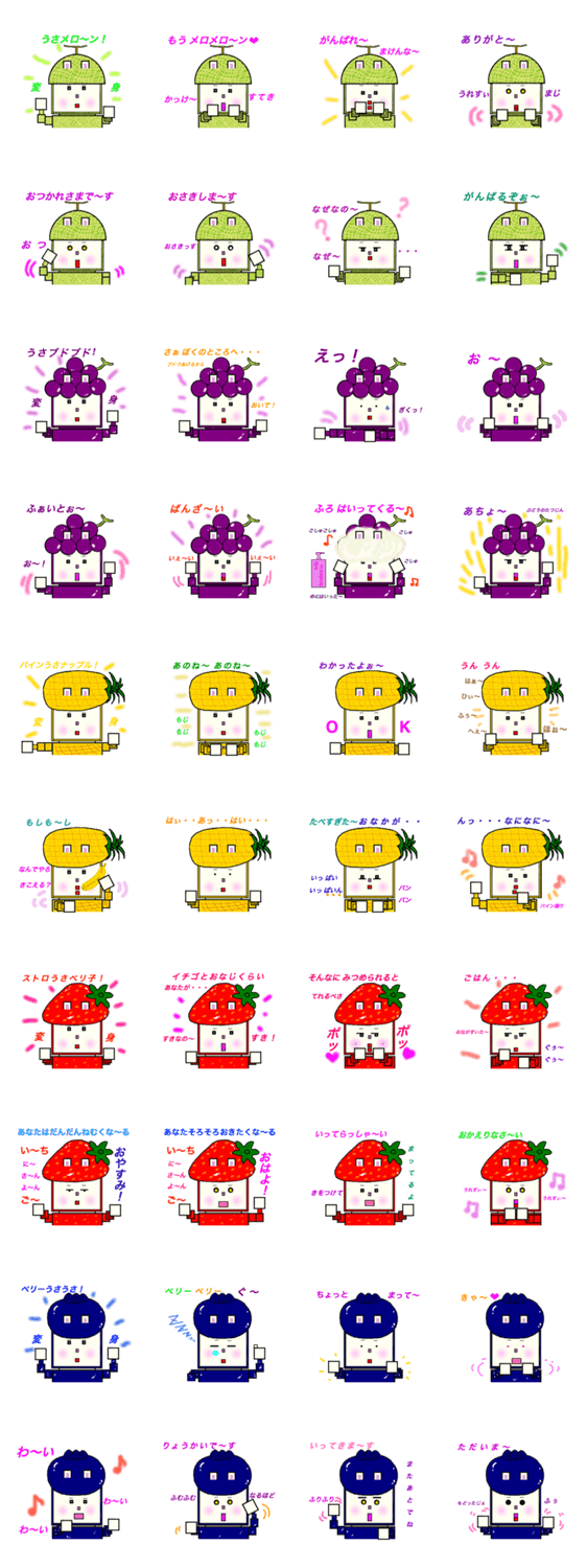 角うさボットフルーツ mituteru_kaneko コメントをどうぞ フルーツで変装している角うさぎろぼっとです。楽しく面白く使ってもらえれば嬉しいです。 このスタンプどう思う?!↓クリックで投票♪好き (0)かわいい (0)かっこいい (0)おもしろい (0)使いやすそう (0)欲しい (0)萌え (0)ほっこりする (0)おしゃれ (0)ゆるい (0)こわい (0)ウザい (0)キモい (0)ムカつく (0)持ってる (0)癒される (0)セクシー (0)個性的 (0)私は買わない (0)誰かプレゼントして! (0) 購入・プレゼントする Facebookでシェア Twitterでシェア