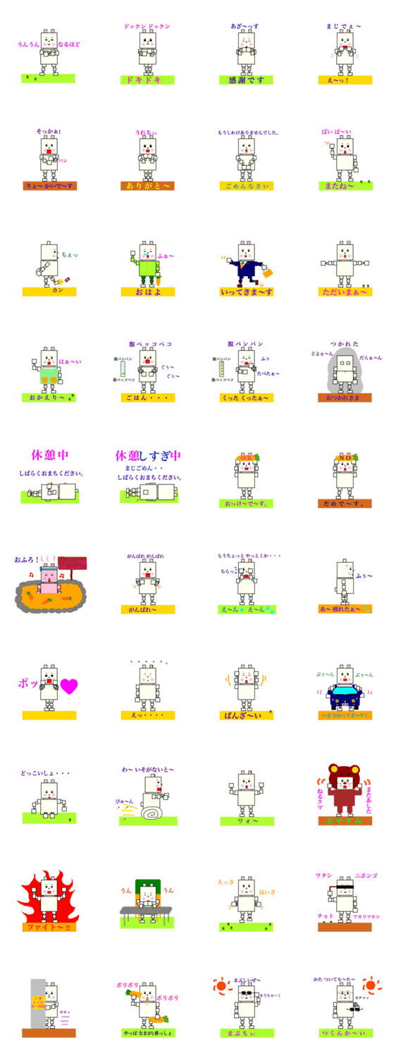 角うさボット3 mituteru_kaneko コメントをどうぞ うさぎをロボット風にイメージして作ってます。全身バージョンで、おもしろおかしく楽しめると嬉しいです。 このスタンプどう思う?!↓クリックで投票♪好き (0)かわいい (0)かっこいい (0)おもしろい (0)使いやすそう (0)欲しい (0)萌え (0)ほっこりする (0)おしゃれ (0)ゆるい (0)こわい (0)ウザい (0)キモい (0)ムカつく (0)持ってる (0)癒される (0)セクシー (0)個性的 (0)私は買わない (0)誰かプレゼントして! (0) 購入・プレゼントする Facebookでシェア Twitterでシェア