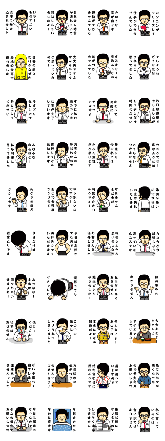 言い訳野郎 katsu コメントをどうぞ 言い訳野郎の多彩な言い訳が楽しいスタンプです。 このスタンプどう思う?!↓クリックで投票♪好き (0)かわいい (0)かっこいい (0)おもしろい (0)使いやすそう (0)欲しい (0)萌え (0)ほっこりする (0)おしゃれ (0)ゆるい (0)こわい (0)ウザい (0)キモい (0)ムカつく (0)持ってる (0)癒される (0)セクシー (0)個性的 (0)私は買わない (0)誰かプレゼントして! (0) 購入・プレゼントする Facebookでシェア Twitterでシェア