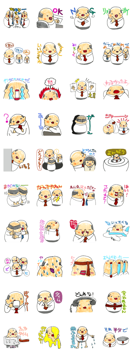 課長ハゲリョーシカ アマグリデザイン コメントをどうぞ 愛すべきハゲた課長たちのマトリョーシカです。 このスタンプどう思う?!↓クリックで投票♪好き (0)かわいい (0)かっこいい (0)おもしろい (0)使いやすそう (0)欲しい (0)萌え (0)ほっこりする (0)おしゃれ (0)ゆるい (0)こわい (0)ウザい (0)キモい (0)ムカつく (0)持ってる (0)癒される (0)セクシー (0)個性的 (0)私は買わない (0)誰かプレゼントして! (0) 購入・プレゼントする Facebookでシェア Twitterでシェア