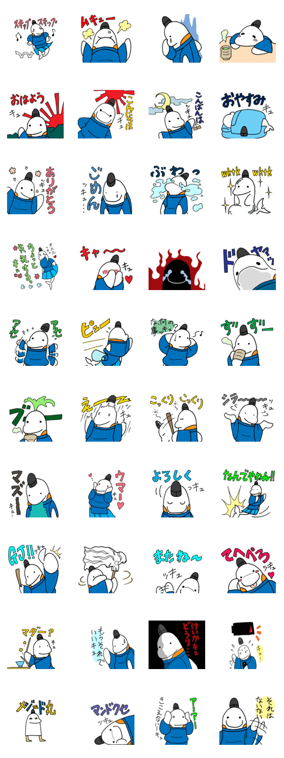 諏訪乃いるか丸 浮島 ハルコ コメントをどうぞ いるか丸がスタンプになったッキュ!実用的に攻めてみたキュ。「いるか丸のくせに何気に使える」と好評いただく予定キュ。可愛くて変なの好きならポチるッキュ! このスタンプどう思う?!↓クリックで投票♪好き (0)かわいい (0)かっこいい (0)おもしろい (0)使いやすそう (0)欲しい (0)萌え (0)ほっこりする (0)おしゃれ (0)ゆるい (0)こわい (0)ウザい (0)キモい (0)ムカつく (0)持ってる (0)癒される (0)セクシー (0)個性的 (0)私は買わない (0)誰かプレゼントして! (0) 購入・プレゼントする Facebookでシェア Twitterでシェア
