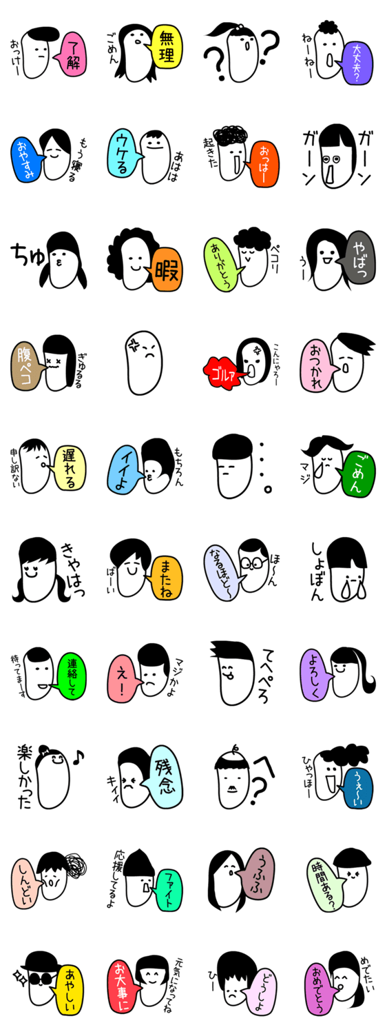 豆っぽい顔の40人の仲間たち のんのん コメントをどうぞ カラフルでシンプル。豆っぽい顔の仲間が40人勢揃い。学校の友達や会社の同僚、ママ友、恋人、趣味仲間、家族など男女問わず日常生活に楽しく気軽に使って頂けます。 このスタンプどう思う?!↓クリックで投票♪好き (0)かわいい (0)かっこいい (0)おもしろい (0)使いやすそう (0)欲しい (0)萌え (0)ほっこりする (0)おしゃれ (0)ゆるい (0)こわい (0)ウザい (0)キモい (0)ムカつく (0)持ってる (0)癒される (0)セクシー (0)個性的 (0)私は買わない (0)誰かプレゼントして! (0) 購入・プレゼントする Facebookでシェア Twitterでシェア