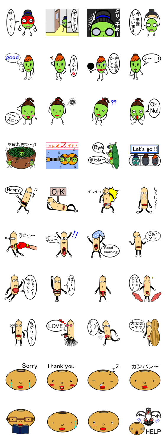 豆ランド ひらりんレシピ コメントをどうぞ 豆ランドには、おじさんに大人気の枝豆3人組アイドル、おちゃらけた落花生、ほのぼの系の大豆が住んでいます。豆たちの笑えるスタンプです。 このスタンプどう思う?!↓クリックで投票♪好き (0)かわいい (0)かっこいい (0)おもしろい (0)使いやすそう (0)欲しい (0)萌え (0)ほっこりする (0)おしゃれ (0)ゆるい (0)こわい (0)ウザい (0)キモい (0)ムカつく (0)持ってる (0)癒される (0)セクシー (0)個性的 (0)私は買わない (0)誰かプレゼントして! (0) 購入・プレゼントする Facebookでシェア Twitterでシェア