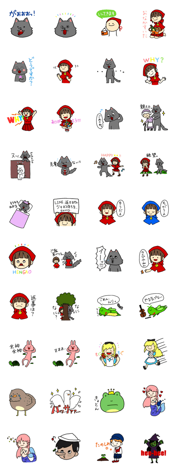 赤ずきんと楽しいおおかみの仲間たち おおかわ コメントをどうぞ 童話でおなじみの登場人物をスタンプにしました このスタンプどう思う?!↓クリックで投票♪好き (0)かわいい (0)かっこいい (0)おもしろい (0)使いやすそう (0)欲しい (0)萌え (0)ほっこりする (0)おしゃれ (0)ゆるい (0)こわい (0)ウザい (0)キモい (0)ムカつく (0)持ってる (0)癒される (0)セクシー (0)個性的 (0)私は買わない (0)誰かプレゼントして! (0) 購入・プレゼントする Facebookでシェア Twitterでシェア