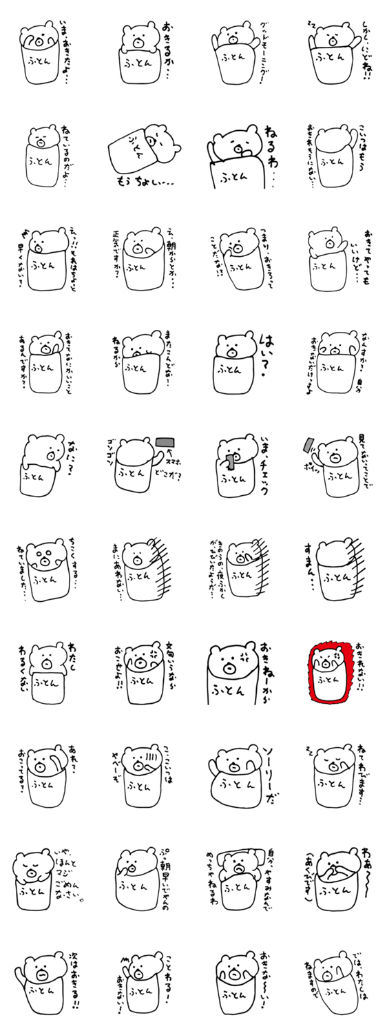 起きれません。 bombonera コメントをどうぞ 起きれない気持ちを伝えるスタンプです。朝が苦手なひと、寝坊、遅刻をしてしまうひとはこのスタンプで開き直ってみましょう!!!いいわけにも使えます。 このスタンプどう思う?!↓クリックで投票♪好き (0)かわいい (0)かっこいい (0)おもしろい (0)使いやすそう (0)欲しい (0)萌え (0)ほっこりする (0)おしゃれ (0)ゆるい (0)こわい (0)ウザい (0)キモい (0)ムカつく (0)持ってる (0)癒される (0)セクシー (0)個性的 (0)私は買わない (0)誰かプレゼントして! (0) 購入・プレゼントする Facebookでシェア Twitterでシェア