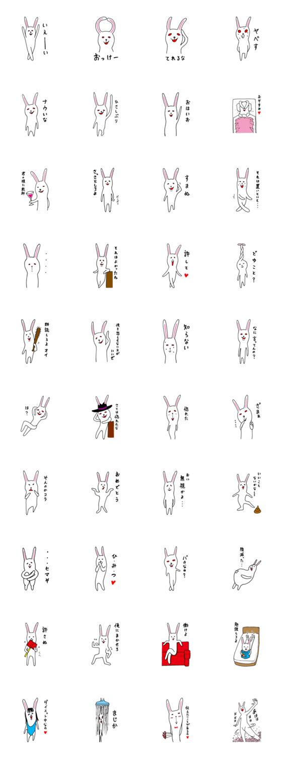 超絶!!脱力うさぎくん 梶山昊頌 コメントをどうぞ かわいい脱力系うさぎくんがあなたのLINE生活の一部になりたくてこちらを見ていますよ?見て・・・いますよ・・・?仲間にしておくれよ・・・ このスタンプどう思う?!↓クリックで投票♪好き (0)かわいい (0)かっこいい (0)おもしろい (0)使いやすそう (0)欲しい (0)萌え (0)ほっこりする (0)おしゃれ (0)ゆるい (0)こわい (0)ウザい (0)キモい (0)ムカつく (0)持ってる (0)癒される (0)セクシー (0)個性的 (0)私は買わない (0)誰かプレゼントして! (0) 購入・プレゼントする Facebookでシェア Twitterでシェア
