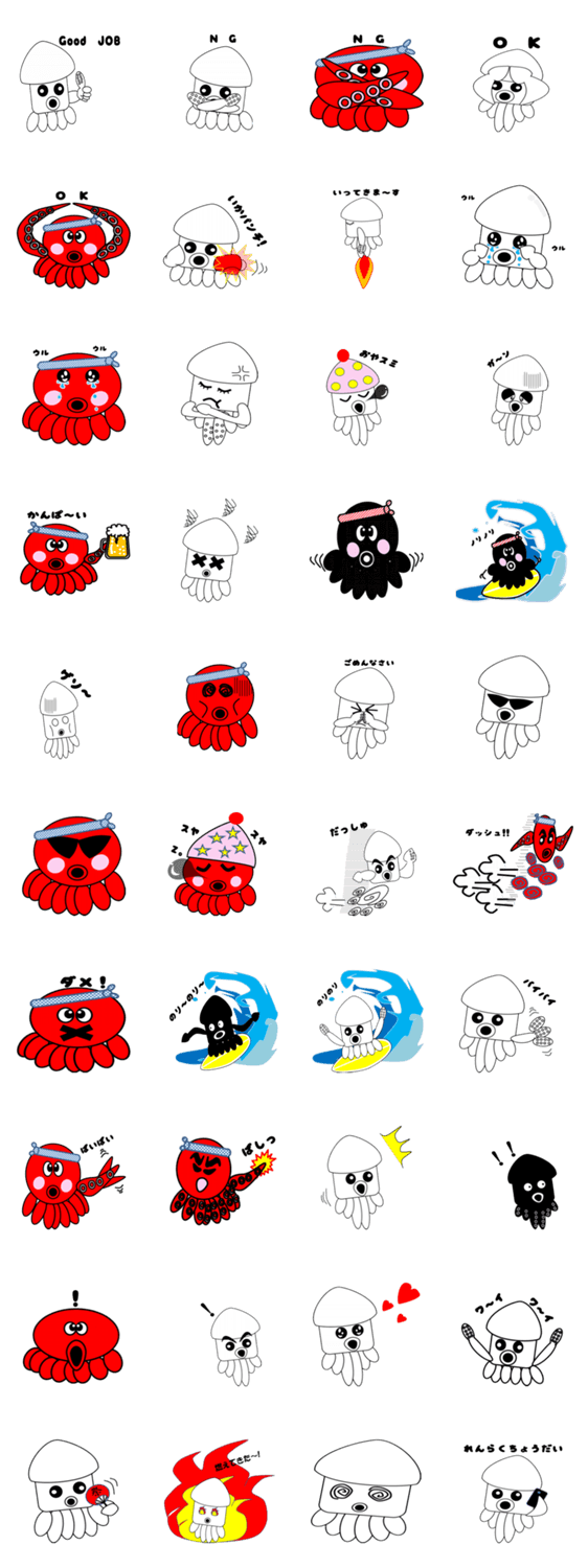 軟体コンビ・イカちゃんタコちゃん 水ようかん コメントをどうぞ イカ・タコがさまざまな表情を出して癒します。海の生物だけに、サーフィンがすきなノリノリでたまにうるうるするビールと合うキャラです。可愛がってやってください このスタンプどう思う?!↓クリックで投票♪好き (0)かわいい (0)かっこいい (0)おもしろい (0)使いやすそう (0)欲しい (0)萌え (0)ほっこりする (0)おしゃれ (0)ゆるい (0)こわい (0)ウザい (0)キモい (0)ムカつく (0)持ってる (0)癒される (0)セクシー (0)個性的 (0)私は買わない (0)誰かプレゼントして! (0) 購入・プレゼントする Facebookでシェア Twitterでシェア