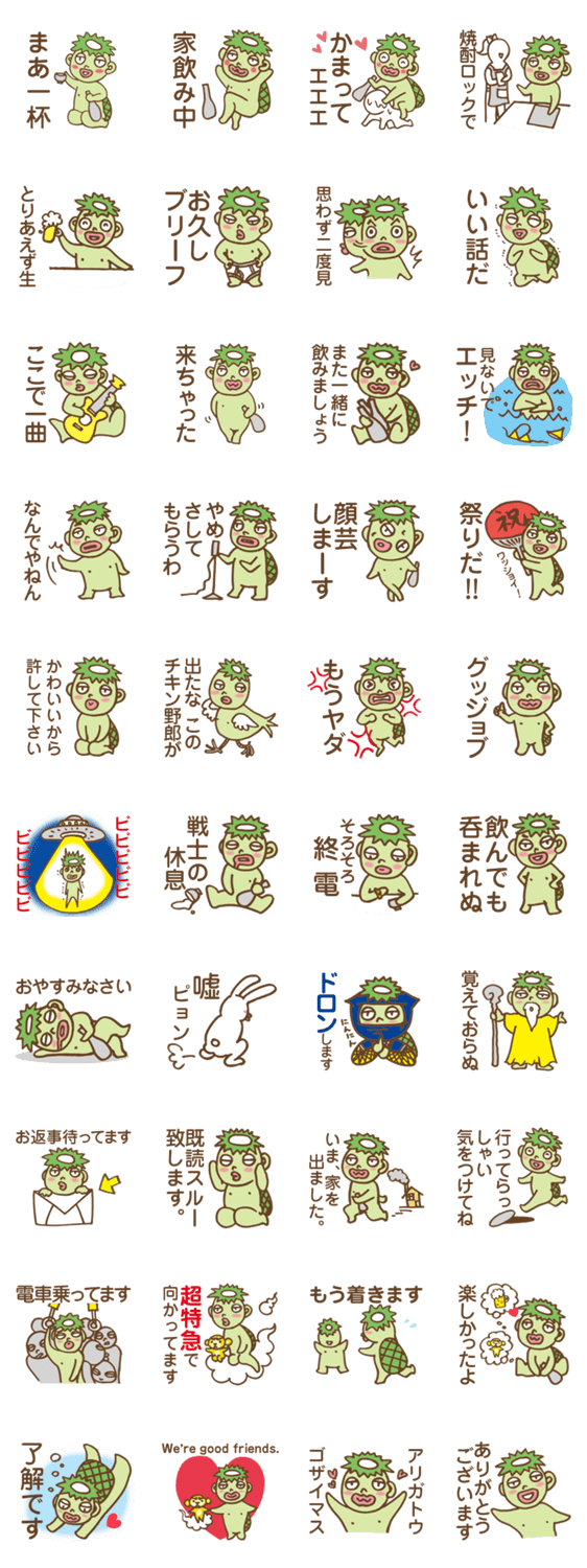 酔っぱらいカッパ フタゴヤマ コメントをどうぞ 酒飲み河童のスタンプです。酔っぱらい気分の会話が楽しめます。誰かを誘ったり、待ち合わせたりする時の会話にも使えます。お酒は大人になってから楽しみましょう。 このスタンプどう思う?!↓クリックで投票♪好き (0)かわいい (0)かっこいい (0)おもしろい (0)使いやすそう (0)欲しい (0)萌え (0)ほっこりする (0)おしゃれ (0)ゆるい (0)こわい (0)ウザい (0)キモい (0)ムカつく (0)持ってる (0)癒される (0)セクシー (0)個性的 (0)私は買わない (0)誰かプレゼントして! (0) 購入・プレゼントする Facebookでシェア Twitterでシェア