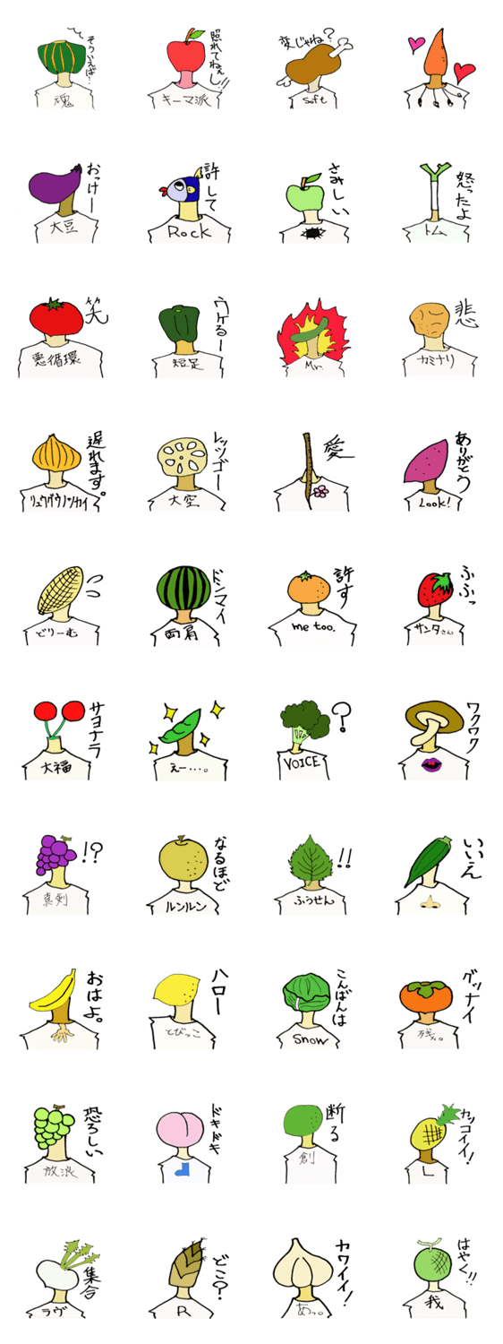 野菜と果物と孤独な肉と孤独な魚な人達。 おぼろ コメントをどうぞ この方々は、顔が食べ物です。みんな、素敵な人達だと思います。感謝です。 このスタンプどう思う?!↓クリックで投票♪好き (0)かわいい (0)かっこいい (0)おもしろい (0)使いやすそう (0)欲しい (0)萌え (0)ほっこりする (0)おしゃれ (0)ゆるい (0)こわい (0)ウザい (0)キモい (0)ムカつく (0)持ってる (0)癒される (0)セクシー (0)個性的 (0)私は買わない (0)誰かプレゼントして! (0) 購入・プレゼントする Facebookでシェア Twitterでシェア