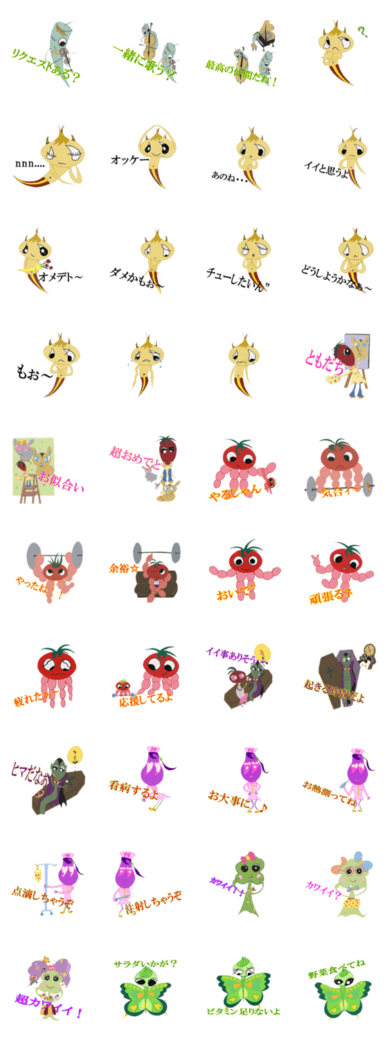 野菜モンスターズ 鈴木 キンタロウ コメントをどうぞ 彼らは野菜のモンスター達です.トマッチョはマッチョなトマト、オニおんは玉ねぎの鬼、ブリッコリーはぶりっ子なブロッコリー、なすのナース、まだまだいるよ・・・。 このスタンプどう思う?!↓クリックで投票♪好き (0)かわいい (0)かっこいい (0)おもしろい (0)使いやすそう (0)欲しい (0)萌え (0)ほっこりする (0)おしゃれ (0)ゆるい (0)こわい (0)ウザい (0)キモい (0)ムカつく (0)持ってる (0)癒される (0)セクシー (0)個性的 (0)私は買わない (0)誰かプレゼントして! (0) 購入・プレゼントする Facebookでシェア Twitterでシェア