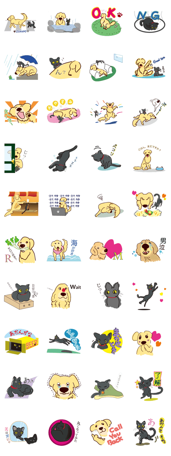 金のイヌ 黒いネコ Rakurinsha コメントをどうぞ 金色のおイヌと黒いネコがひとつ屋根の下でくらしてる。おイヌの友だちもやってきて、楽しいスタンプになりました。関西育ちで大阪弁もしゃべるよ〜 このスタンプどう思う?!↓クリックで投票♪好き (0)かわいい (0)かっこいい (0)おもしろい (0)使いやすそう (0)欲しい (0)萌え (0)ほっこりする (0)おしゃれ (0)ゆるい (0)こわい (0)ウザい (0)キモい (0)ムカつく (0)持ってる (0)癒される (0)セクシー (0)個性的 (0)私は買わない (0)誰かプレゼントして! (0) 購入・プレゼントする Facebookでシェア Twitterでシェア