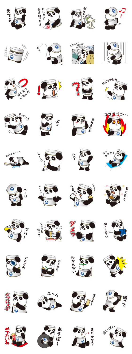 金方堂の公式スタンプ「パンダの缶缶」 金方堂松本工業(株)企画課 コメントをどうぞ 東京上野にある缶製造メーカー「金方堂松本工業(株)」の公式マスコット、パンダの缶缶です。パンダと丸缶の人造動物、なれなれしいタメ口と細いタレ目が特徴。 このスタンプどう思う?!↓クリックで投票♪好き (0)かわいい (0)かっこいい (0)おもしろい (0)使いやすそう (0)欲しい (0)萌え (0)ほっこりする (0)おしゃれ (0)ゆるい (0)こわい (0)ウザい (0)キモい (0)ムカつく (0)持ってる (0)癒される (0)セクシー (0)個性的 (0)私は買わない (0)誰かプレゼントして! (0) 購入・プレゼントする Facebookでシェア Twitterでシェア