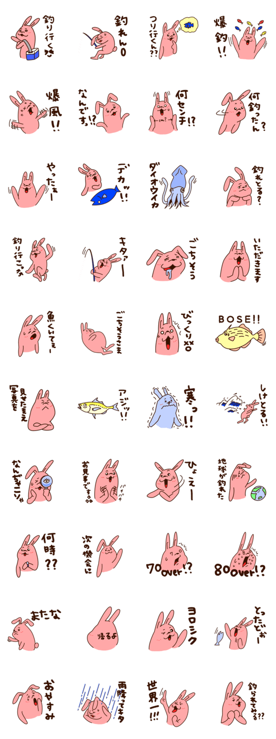 釣り好きうさぎ・ゆっき kura コメントをどうぞ 釣りが大好きなゆっきちゃんのスタンプです!釣りに行った時や、釣りに行ってる友達などに使ってください!よろしくお願いします! このスタンプどう思う?!↓クリックで投票♪好き (0)かわいい (0)かっこいい (0)おもしろい (0)使いやすそう (0)欲しい (0)萌え (0)ほっこりする (0)おしゃれ (0)ゆるい (0)こわい (0)ウザい (0)キモい (0)ムカつく (0)持ってる (0)癒される (0)セクシー (0)個性的 (0)私は買わない (0)誰かプレゼントして! (0) 購入・プレゼントする Facebookでシェア Twitterでシェア