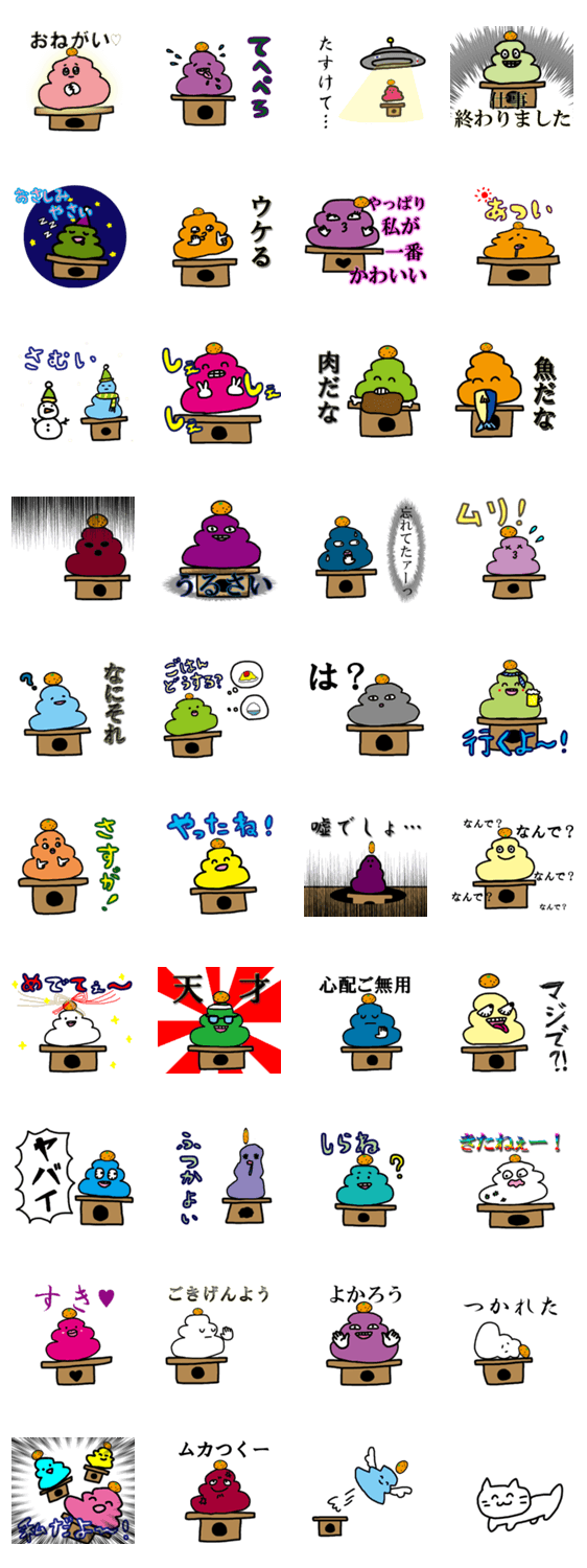 鏡餅ちゃん!!! ちゅみす コメントをどうぞ カラフルな鏡餅ちゃんのスタンプだよ!!!!!!!! このスタンプどう思う?!↓クリックで投票♪好き (0)かわいい (0)かっこいい (0)おもしろい (0)使いやすそう (0)欲しい (0)萌え (0)ほっこりする (0)おしゃれ (0)ゆるい (0)こわい (0)ウザい (0)キモい (0)ムカつく (0)持ってる (0)癒される (0)セクシー (0)個性的 (0)私は買わない (0)誰かプレゼントして! (0) 購入・プレゼントする Facebookでシェア Twitterでシェア