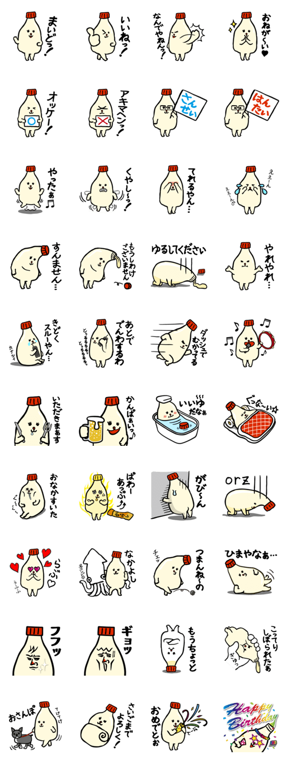 関西♡マヨネーズ。 Ryozaemon コメントをどうぞ 関西弁(大阪弁)を話す マヨネーズの妖精「マヨーラ」です。マヨネーズが大好きな人も、そうでない人も、かわいがってやってください! このスタンプどう思う?!↓クリックで投票♪好き (0)かわいい (0)かっこいい (0)おもしろい (0)使いやすそう (0)欲しい (0)萌え (0)ほっこりする (0)おしゃれ (0)ゆるい (0)こわい (0)ウザい (0)キモい (0)ムカつく (0)持ってる (0)癒される (0)セクシー (0)個性的 (0)私は買わない (0)誰かプレゼントして! (0) 購入・プレゼントする Facebookでシェア Twitterでシェア
