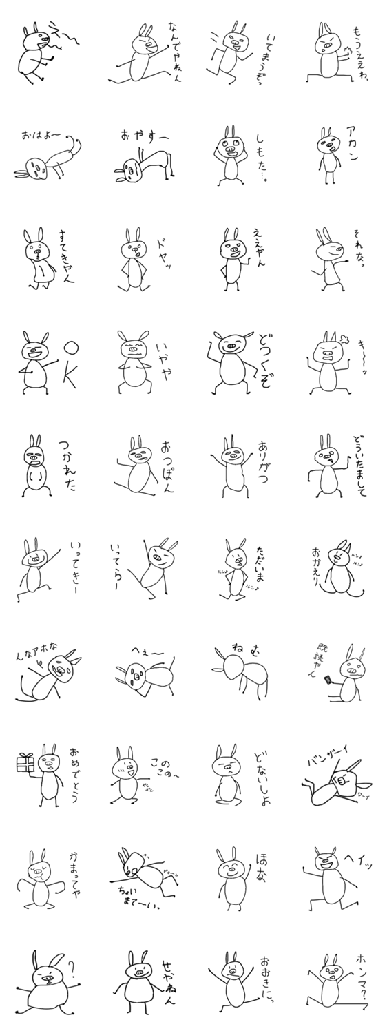 関西弁うさぎ なまこ コメントをどうぞ 関西弁をしゃべるウサギです。最初の見た目のインパクトは凄いですが、すぐ慣れます。かわいがってください。 このスタンプどう思う?!↓クリックで投票♪好き (0)かわいい (0)かっこいい (0)おもしろい (0)使いやすそう (0)欲しい (0)萌え (0)ほっこりする (0)おしゃれ (0)ゆるい (0)こわい (0)ウザい (0)キモい (0)ムカつく (0)持ってる (0)癒される (0)セクシー (0)個性的 (0)私は買わない (0)誰かプレゼントして! (0) 購入・プレゼントする Facebookでシェア Twitterでシェア
