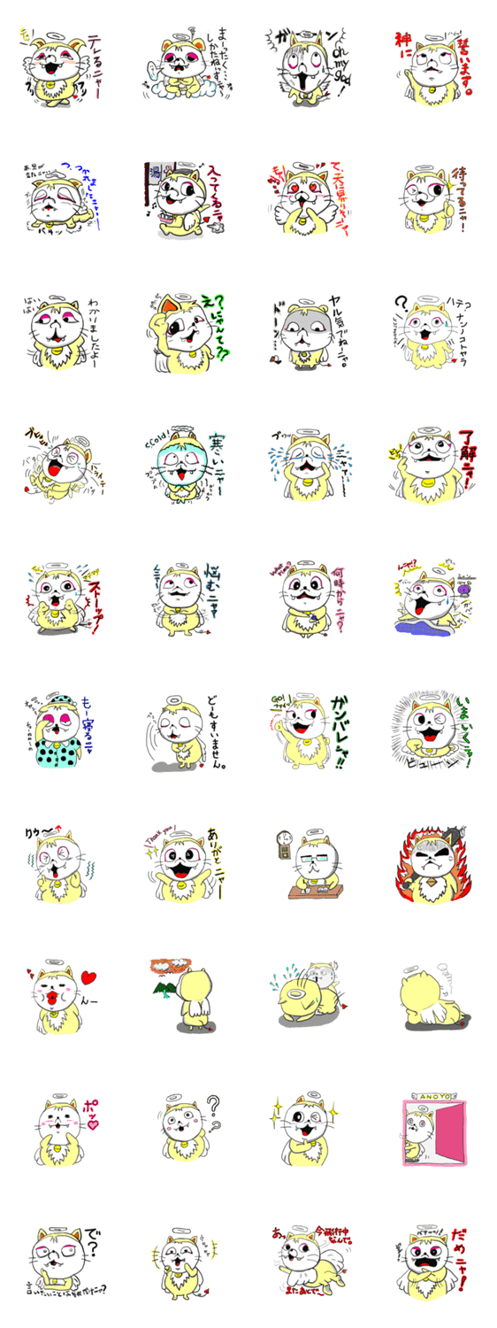 陽気な小天使猫「天にゃん」 茶々丸 コメントをどうぞ 可愛さ満点!陽気な小天使猫、「天にゃん」が織りなす愉快な日常です。喜怒哀楽をはっきりと表現する小天使猫です(笑) このスタンプどう思う?!↓クリックで投票♪好き (0)かわいい (0)かっこいい (0)おもしろい (0)使いやすそう (0)欲しい (0)萌え (0)ほっこりする (0)おしゃれ (0)ゆるい (0)こわい (0)ウザい (0)キモい (0)ムカつく (0)持ってる (0)癒される (0)セクシー (0)個性的 (0)私は買わない (0)誰かプレゼントして! (0) 購入・プレゼントする Facebookでシェア Twitterでシェア