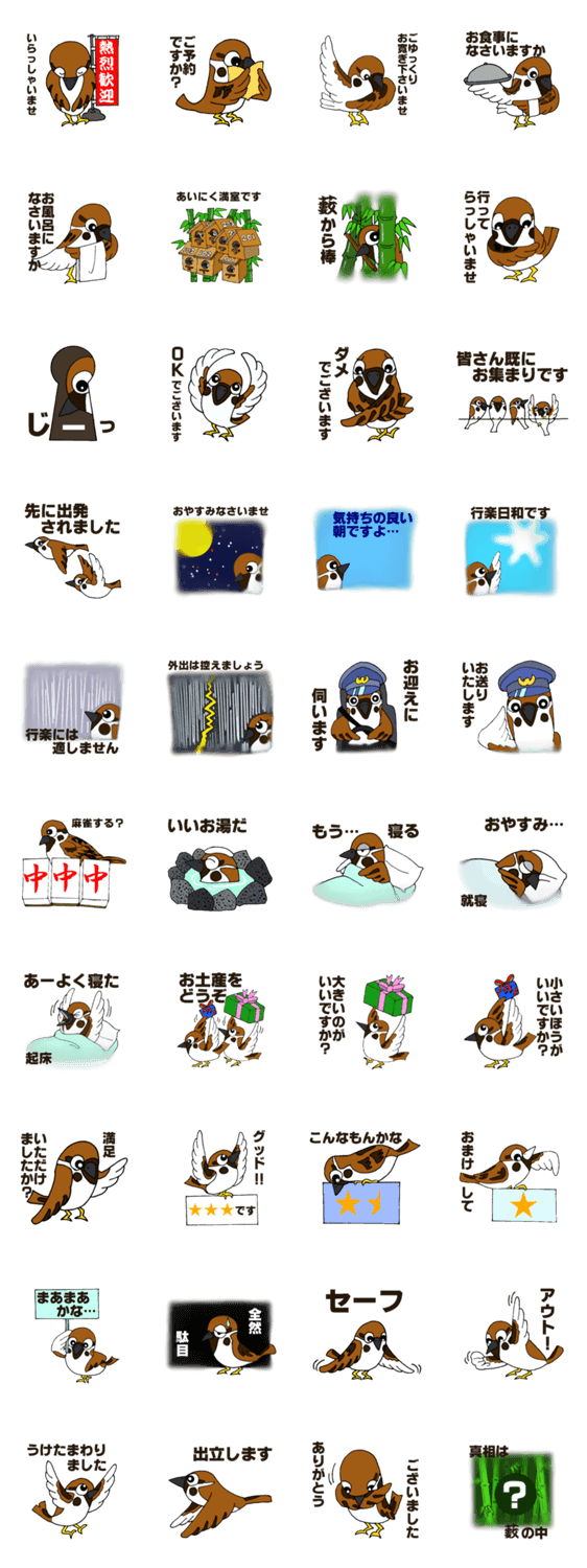 雀のお宿 のんぼう コメントをどうぞ 森の奥の竹薮の中に雀のお宿が有ったとさ。 このスタンプどう思う?!↓クリックで投票♪好き (0)かわいい (0)かっこいい (0)おもしろい (0)使いやすそう (0)欲しい (0)萌え (0)ほっこりする (0)おしゃれ (0)ゆるい (0)こわい (0)ウザい (0)キモい (0)ムカつく (0)持ってる (0)癒される (0)セクシー (0)個性的 (0)私は買わない (0)誰かプレゼントして! (0) 購入・プレゼントする Facebookでシェア Twitterでシェア
