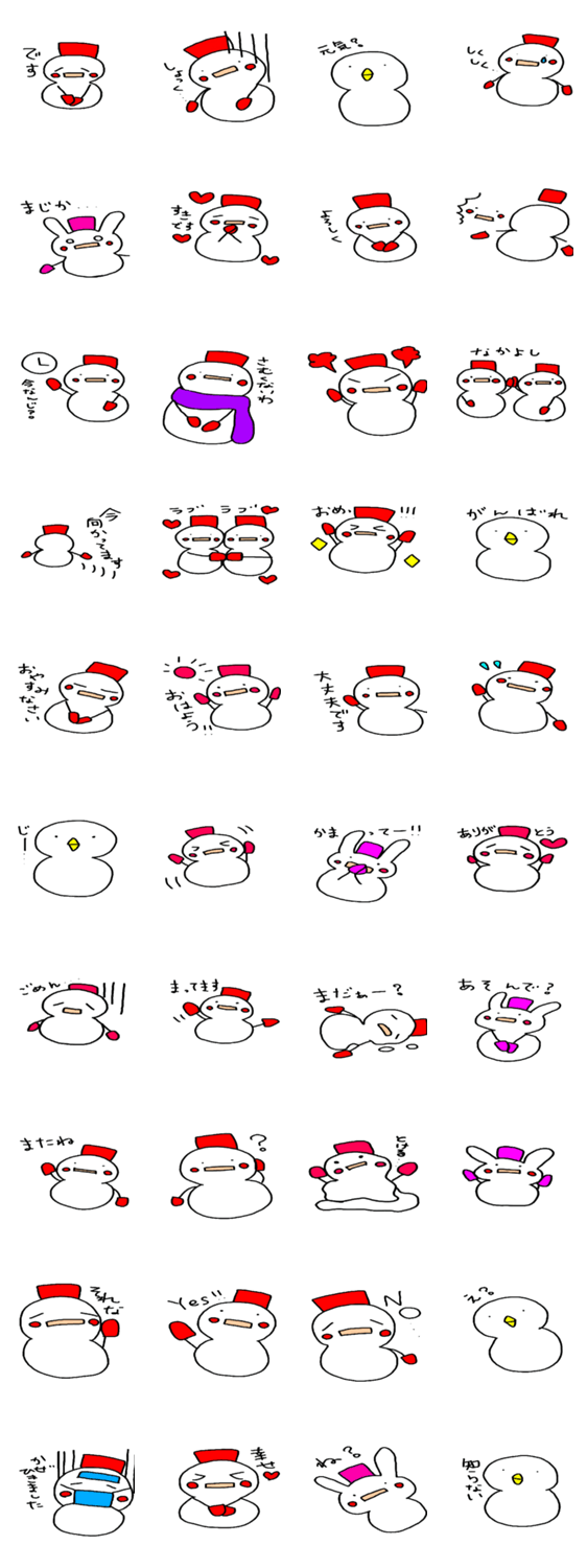 雪だるまさんたち ゆず コメントをどうぞ 雪だるま、雪うさぎ、雪ひよこさんたちのスタンプです。 このスタンプどう思う?!↓クリックで投票♪好き (0)かわいい (0)かっこいい (0)おもしろい (0)使いやすそう (0)欲しい (0)萌え (0)ほっこりする (0)おしゃれ (0)ゆるい (0)こわい (0)ウザい (0)キモい (0)ムカつく (0)持ってる (0)癒される (0)セクシー (0)個性的 (0)私は買わない (0)誰かプレゼントして! (0) 購入・プレゼントする Facebookでシェア Twitterでシェア