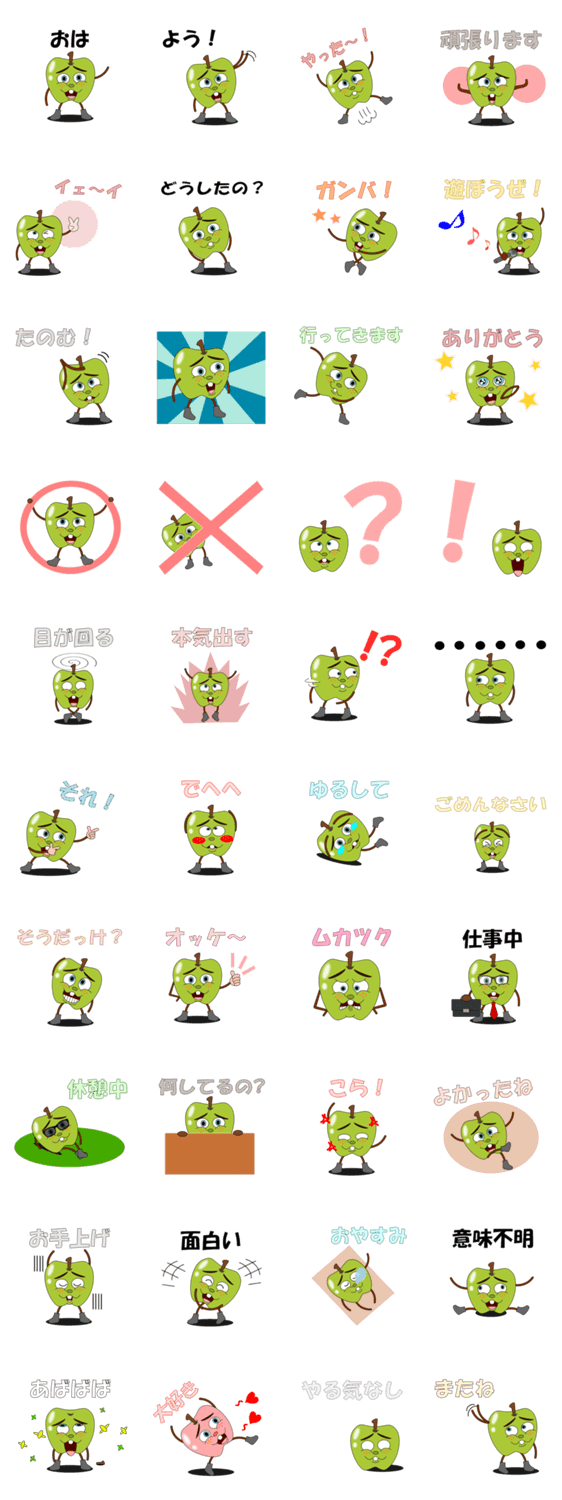 青リンゴさんで会話 おなり コメントをどうぞ ちょっと憎たらしい青リンゴさんのスタンプ。あいさつやトークでよく使うスタンプが中心です。会話の返信用や誘うときになどお使いください。 このスタンプどう思う?!↓クリックで投票♪好き (0)かわいい (0)かっこいい (0)おもしろい (0)使いやすそう (0)欲しい (0)萌え (0)ほっこりする (0)おしゃれ (0)ゆるい (0)こわい (0)ウザい (0)キモい (0)ムカつく (0)持ってる (0)癒される (0)セクシー (0)個性的 (0)私は買わない (0)誰かプレゼントして! (0) 購入・プレゼントする Facebookでシェア Twitterでシェア