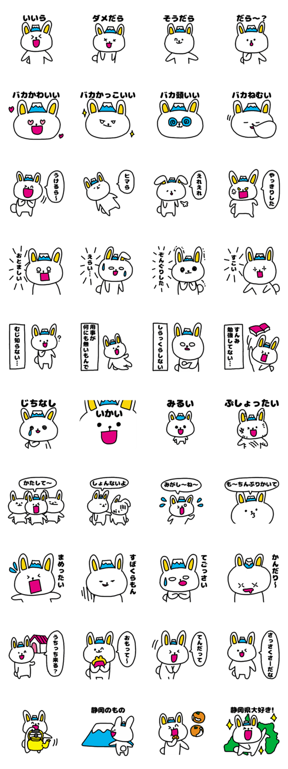 静岡弁のスタンプ mediaG コメントをどうぞ 静岡県の方言スタンプです。古い言葉もあります。山梨県、長野県の方言と少し似てます。富士山の帽子をかぶった可愛いうさぎがしゃべります。 このスタンプどう思う?!↓クリックで投票♪好き (0)かわいい (0)かっこいい (0)おもしろい (0)使いやすそう (0)欲しい (0)萌え (0)ほっこりする (0)おしゃれ (0)ゆるい (0)こわい (0)ウザい (0)キモい (0)ムカつく (0)持ってる (0)癒される (0)セクシー (0)個性的 (0)私は買わない (0)誰かプレゼントして! (0) 購入・プレゼントする Facebookでシェア Twitterでシェア