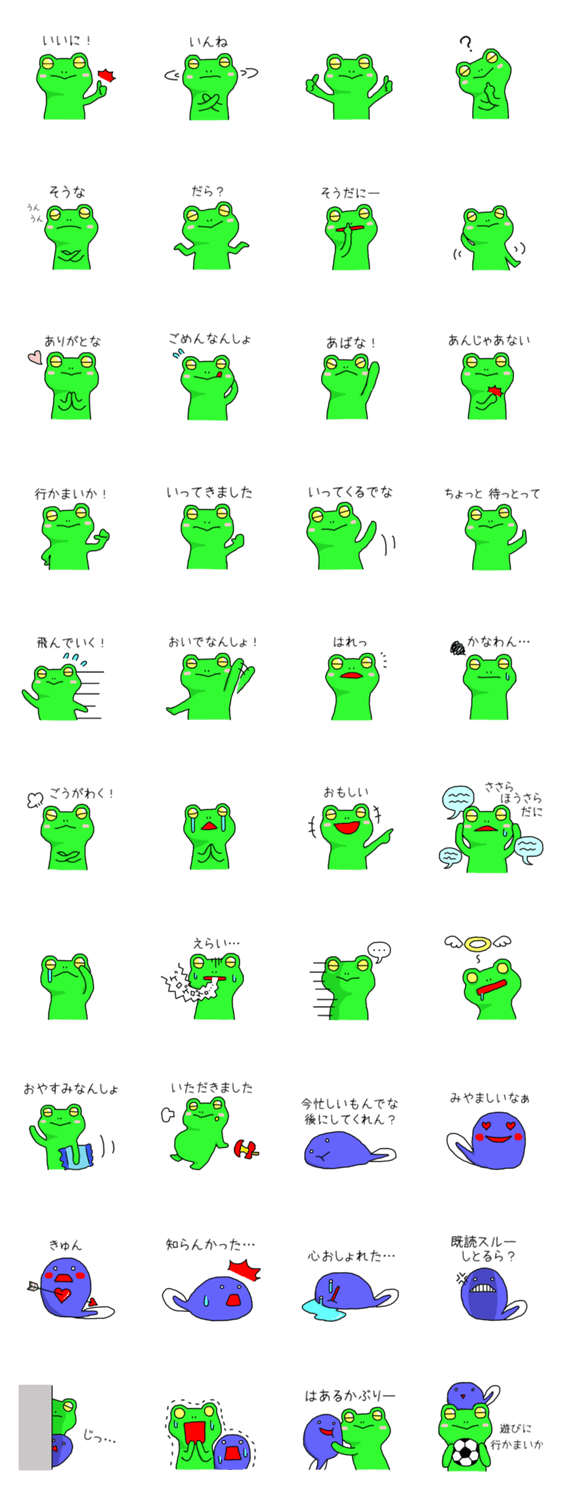 飯田弁のカエル a.k. コメントをどうぞ 飯田弁のスタンプ作ってみました。どうぞお使いて。 このスタンプどう思う?!↓クリックで投票♪好き (0)かわいい (0)かっこいい (0)おもしろい (0)使いやすそう (0)欲しい (0)萌え (0)ほっこりする (0)おしゃれ (0)ゆるい (0)こわい (0)ウザい (0)キモい (0)ムカつく (0)持ってる (0)癒される (0)セクシー (0)個性的 (0)私は買わない (0)誰かプレゼントして! (0) 購入・プレゼントする Facebookでシェア Twitterでシェア
