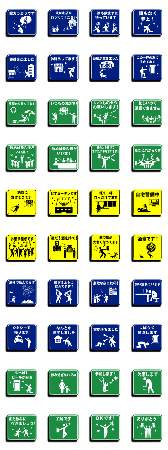 飲み会標識3 miblue コメントをどうぞ 飲み会標識スタンプ第3弾です!前回、前々回同様、飲み会を楽しみつつ、臨機応変にお使いください! このスタンプどう思う?!↓クリックで投票♪好き (0)かわいい (0)かっこいい (0)おもしろい (0)使いやすそう (0)欲しい (0)萌え (0)ほっこりする (0)おしゃれ (0)ゆるい (0)こわい (0)ウザい (0)キモい (0)ムカつく (0)持ってる (0)癒される (0)セクシー (0)個性的 (0)私は買わない (0)誰かプレゼントして! (0) 購入・プレゼントする Facebookでシェア Twitterでシェア
