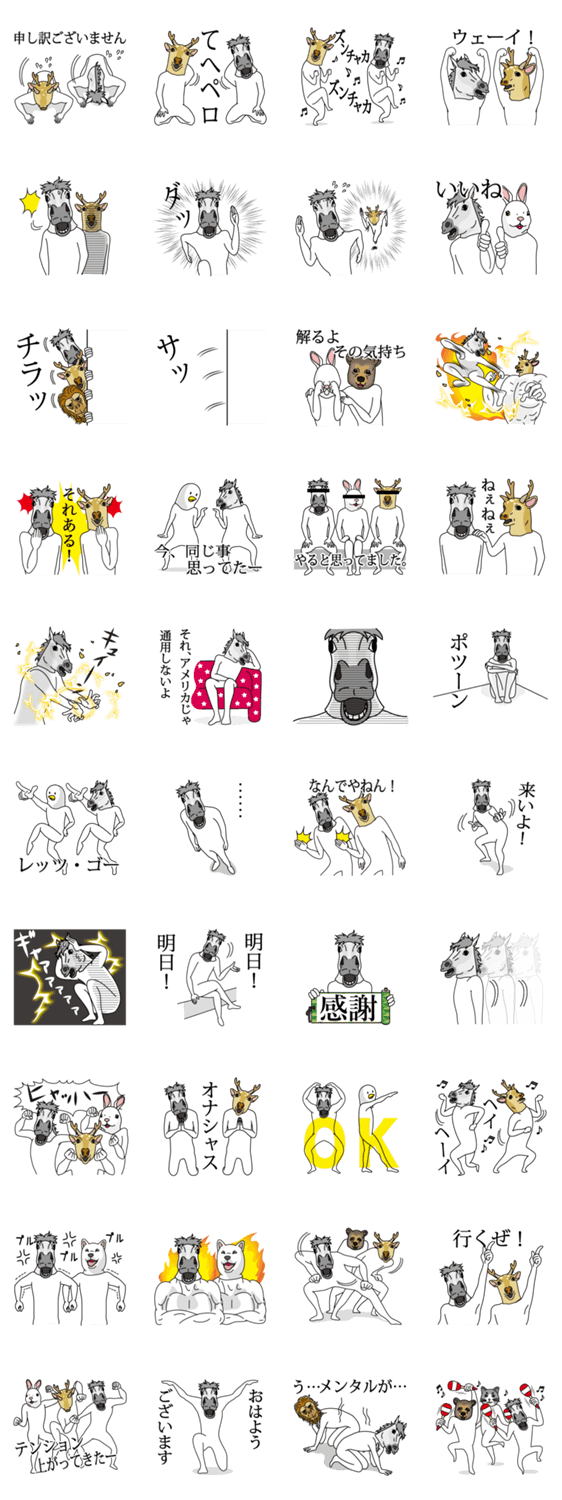 馬とうざい動物たち しん コメントをどうぞ 馬と鹿とゴリラとトリとうさぎとくまがシュールで楽しい日常をお届けするスタンプです。 このスタンプどう思う?!↓クリックで投票♪好き (0)かわいい (0)かっこいい (0)おもしろい (0)使いやすそう (0)欲しい (0)萌え (0)ほっこりする (0)おしゃれ (0)ゆるい (0)こわい (0)ウザい (0)キモい (0)ムカつく (0)持ってる (0)癒される (0)セクシー (0)個性的 (0)私は買わない (0)誰かプレゼントして! (0) 購入・プレゼントする Facebookでシェア Twitterでシェア