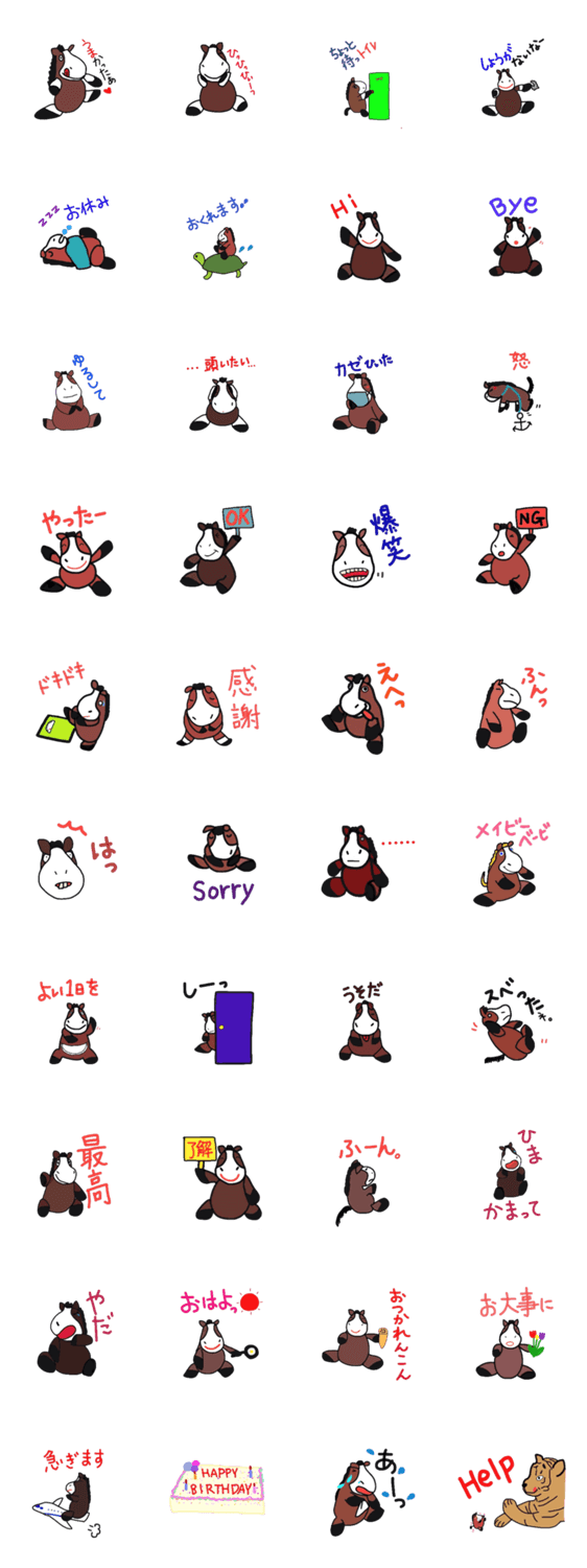 馬の一言 Jun コメントをどうぞ 馬におしゃべりさせてみましたおやじギャグならぬおばばギャグ(笑 このスタンプどう思う?!↓クリックで投票♪好き (0)かわいい (0)かっこいい (0)おもしろい (0)使いやすそう (0)欲しい (0)萌え (0)ほっこりする (0)おしゃれ (0)ゆるい (0)こわい (0)ウザい (0)キモい (0)ムカつく (0)持ってる (0)癒される (0)セクシー (0)個性的 (0)私は買わない (0)誰かプレゼントして! (0) 購入・プレゼントする Facebookでシェア Twitterでシェア