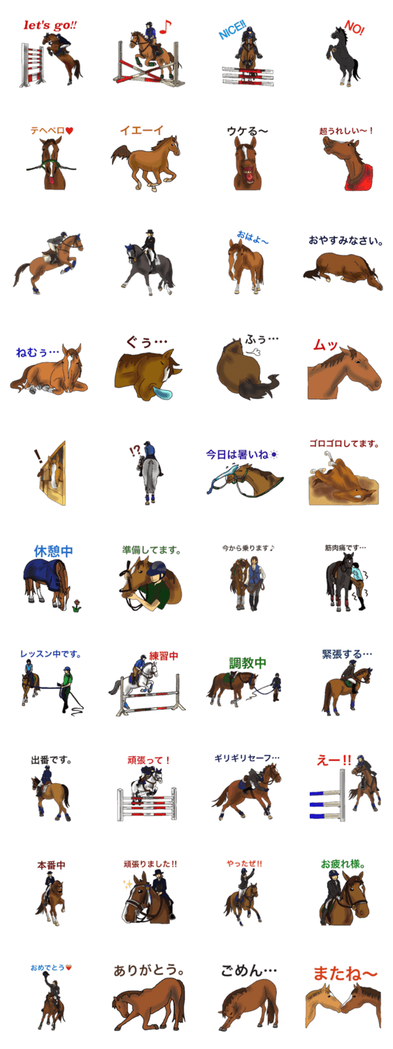馬好きスタンプ~乗馬編~ 第2弾 オーレ コメントをどうぞ 乗馬シーンに使えるスタンプの第2弾ができました!日常会話にも使えるスタンプも増えました!第1弾を合わせてどうぞ。 このスタンプどう思う?!↓クリックで投票♪好き (0)かわいい (0)かっこいい (0)おもしろい (0)使いやすそう (0)欲しい (0)萌え (0)ほっこりする (0)おしゃれ (0)ゆるい (0)こわい (0)ウザい (0)キモい (0)ムカつく (0)持ってる (0)癒される (0)セクシー (0)個性的 (0)私は買わない (0)誰かプレゼントして! (0) 購入・プレゼントする Facebookでシェア Twitterでシェア