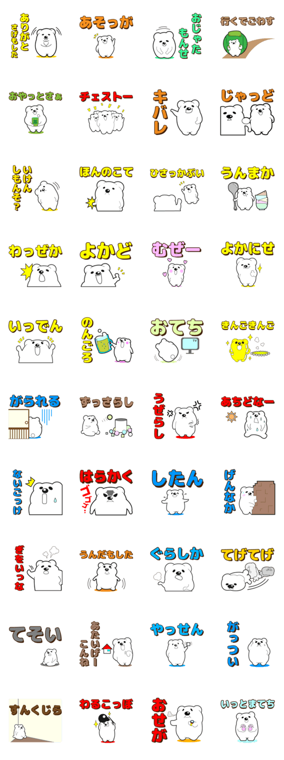 鹿児島弁シロクマどん おっくん コメントをどうぞ 鹿児島県鹿児島市非公認キャラクター『シロクマどん』のスタンプ。日頃は常にアイスカップの中にいるゆるキャラですが。鹿児島弁を喋る時にだけ外にでる謎の生物です。 このスタンプどう思う?!↓クリックで投票♪好き (0)かわいい (0)かっこいい (0)おもしろい (0)使いやすそう (0)欲しい (0)萌え (0)ほっこりする (0)おしゃれ (0)ゆるい (0)こわい (0)ウザい (0)キモい (0)ムカつく (0)持ってる (0)癒される (0)セクシー (0)個性的 (0)私は買わない (0)誰かプレゼントして! (0) 購入・プレゼントする Facebookでシェア Twitterでシェア