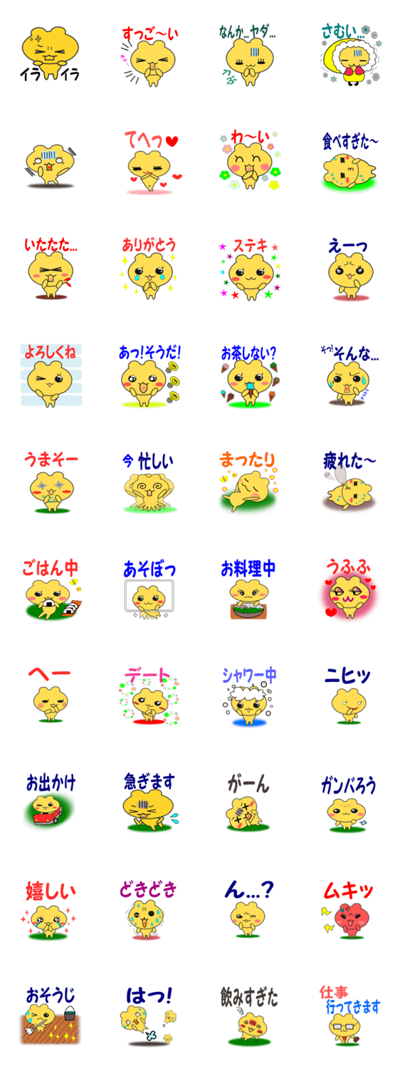 黄色いくまさんの日常メッセージスタンプ mamiko コメントをどうぞ 黄色いくまさんの日常メッセージスタンプです。日々の会話で使ってね。 このスタンプどう思う?!↓クリックで投票♪好き (0)かわいい (0)かっこいい (0)おもしろい (0)使いやすそう (0)欲しい (0)萌え (0)ほっこりする (0)おしゃれ (0)ゆるい (0)こわい (0)ウザい (0)キモい (0)ムカつく (0)持ってる (0)癒される (0)セクシー (0)個性的 (0)私は買わない (0)誰かプレゼントして! (0) 購入・プレゼントする Facebookでシェア Twitterでシェア