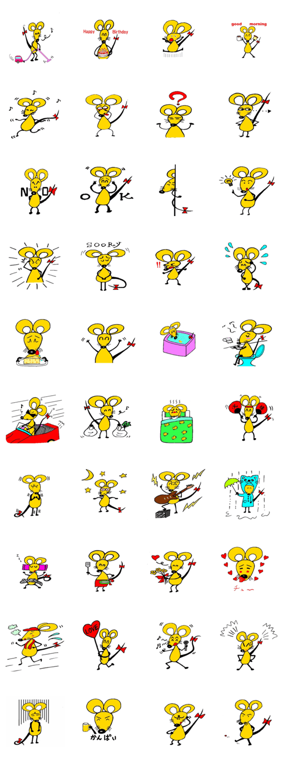 黄色ねずみのチュー丸 kochi コメントをどうぞ 黄色いねずみのチュー丸です。少しやんちゃでゆかいな仕草を、ぜひ日常会話で使ってみてください。 このスタンプどう思う?!↓クリックで投票♪好き (0)かわいい (0)かっこいい (0)おもしろい (0)使いやすそう (0)欲しい (0)萌え (0)ほっこりする (0)おしゃれ (0)ゆるい (0)こわい (0)ウザい (0)キモい (0)ムカつく (0)持ってる (0)癒される (0)セクシー (0)個性的 (0)私は買わない (0)誰かプレゼントして! (0) 購入・プレゼントする Facebookでシェア Twitterでシェア