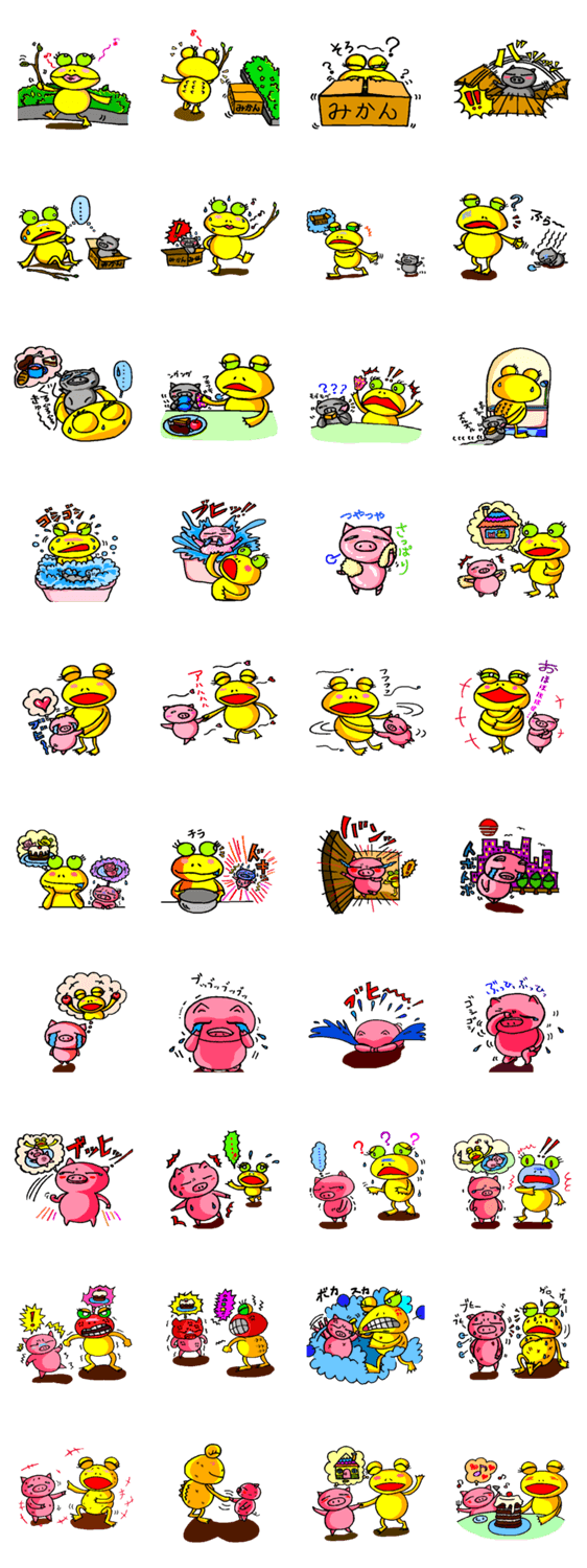 黄色カエルと子ブタのトンタン ホーリー コメントをどうぞ 黄色カエルと子ブタのトンタンは公園で出会いました。ひょんなことから彼らは一緒に生活。時々ケンカもするけど仲良く暮らしています。 このスタンプどう思う?!↓クリックで投票♪好き (0)かわいい (0)かっこいい (0)おもしろい (0)使いやすそう (0)欲しい (0)萌え (0)ほっこりする (0)おしゃれ (0)ゆるい (0)こわい (0)ウザい (0)キモい (0)ムカつく (0)持ってる (0)癒される (0)セクシー (0)個性的 (0)私は買わない (0)誰かプレゼントして! (0) 購入・プレゼントする Facebookでシェア Twitterでシェア