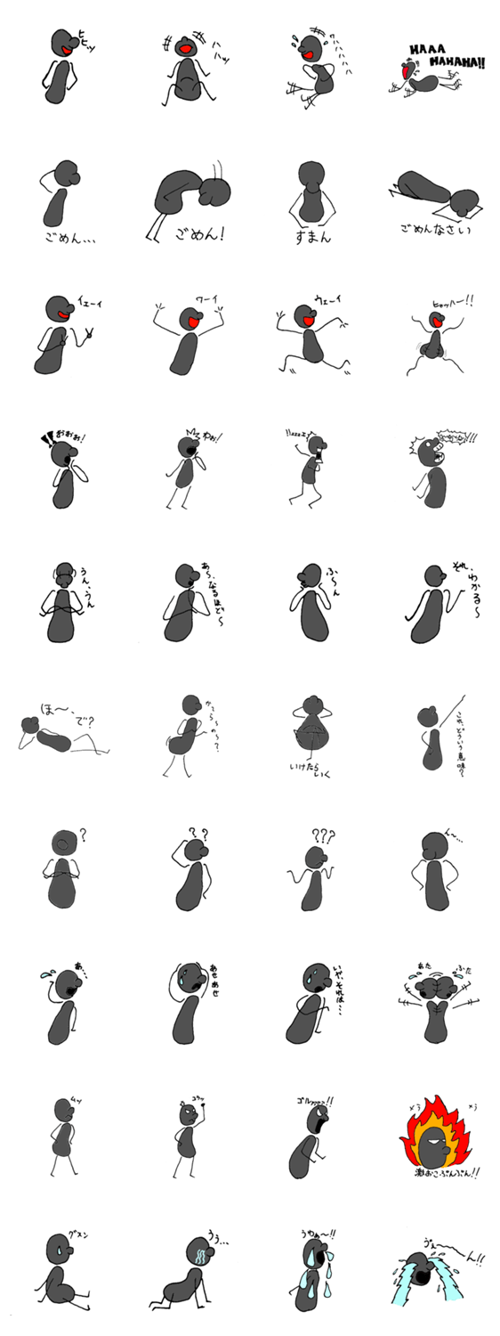 黒い人間 c.k. コメントをどうぞ 黒い人(影人間)の表情豊かなスタンプです。 このスタンプどう思う?!↓クリックで投票♪好き (0)かわいい (0)かっこいい (0)おもしろい (0)使いやすそう (0)欲しい (0)萌え (0)ほっこりする (0)おしゃれ (0)ゆるい (0)こわい (0)ウザい (0)キモい (0)ムカつく (0)持ってる (0)癒される (0)セクシー (0)個性的 (0)私は買わない (0)誰かプレゼントして! (0) 購入・プレゼントする Facebookでシェア Twitterでシェア