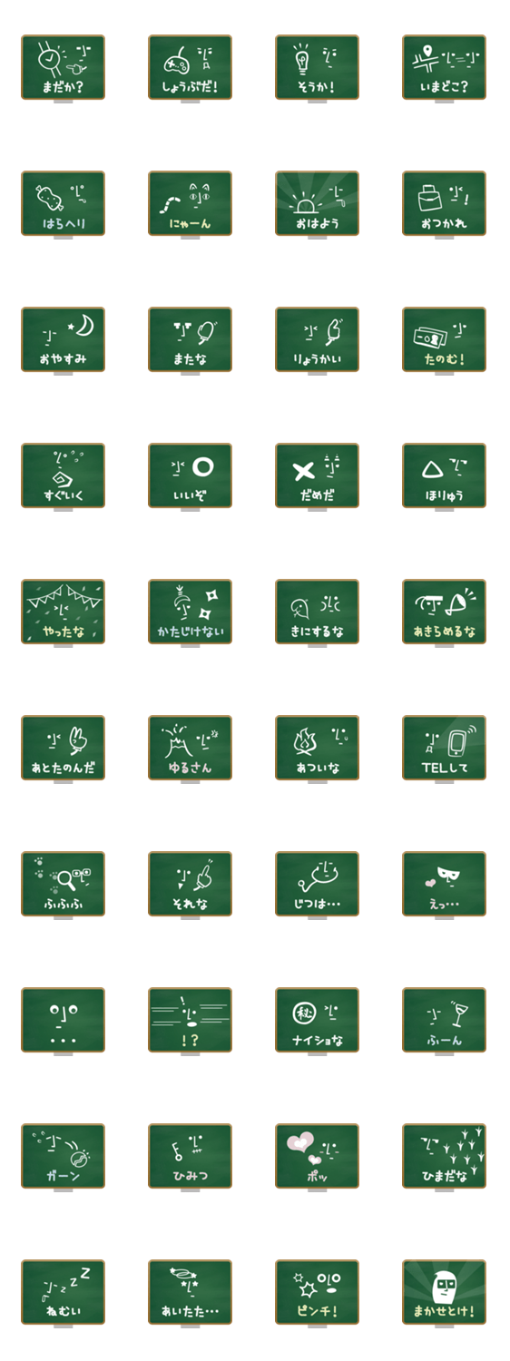 黒板ツーン ta2ya コメントをどうぞ ツーンとした表情が憎めない。黒板を通してあなたの気持ちを代弁します。 このスタンプどう思う?!↓クリックで投票♪好き (0)かわいい (0)かっこいい (0)おもしろい (0)使いやすそう (0)欲しい (0)萌え (0)ほっこりする (0)おしゃれ (0)ゆるい (0)こわい (0)ウザい (0)キモい (0)ムカつく (0)持ってる (0)癒される (0)セクシー (0)個性的 (0)私は買わない (0)誰かプレゼントして! (0) 購入・プレゼントする Facebookでシェア Twitterでシェア