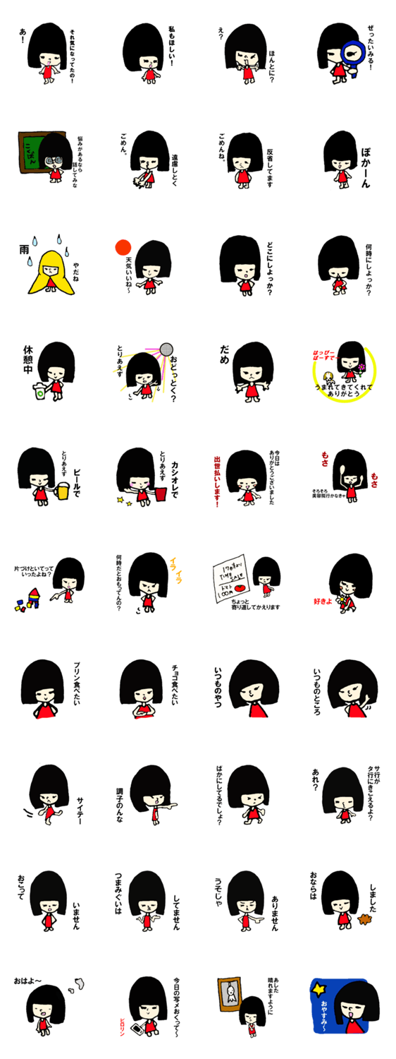 黒髪ぱる子のコミカル日常 HaL コメントをどうぞ 食べることが大好きなツンデレ女子「ぱる子」彼女のコミカルな表情、ちょっと毒のあるマニアックな言動がくせになること間違いなし。 このスタンプどう思う?!↓クリックで投票♪好き (0)かわいい (0)かっこいい (0)おもしろい (0)使いやすそう (0)欲しい (0)萌え (0)ほっこりする (0)おしゃれ (0)ゆるい (0)こわい (0)ウザい (0)キモい (0)ムカつく (0)持ってる (0)癒される (0)セクシー (0)個性的 (0)私は買わない (0)誰かプレゼントして! (0) 購入・プレゼントする Facebookでシェア Twitterでシェア