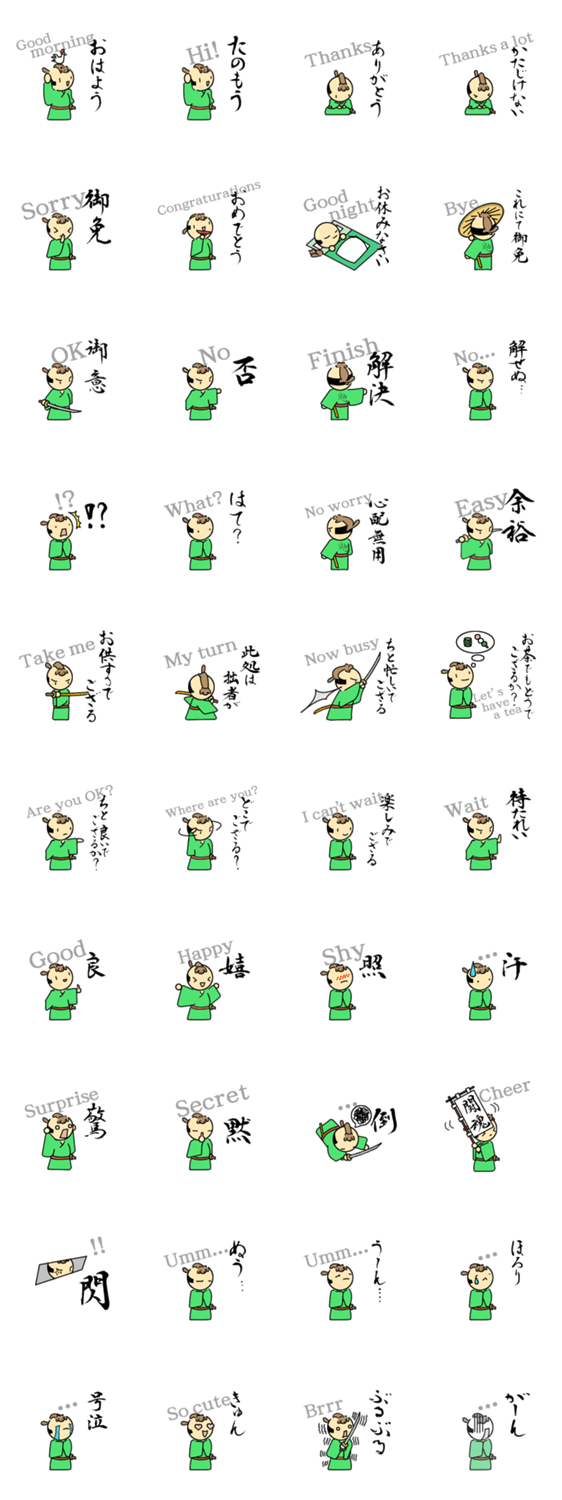 鼬侍 -いたちざむらい- れおん くんちはーと & くぬぎ コメントをどうぞ 毛が無い侍がまげの代わりに乗せたのは「いたち」!決して落ちない「いたち」と「侍」のコンビ。いたちざむらいをどうぞ宜しく。かっこよくもかわいいスタンプです。 このスタンプどう思う?!↓クリックで投票♪好き (0)かわいい (0)かっこいい (0)おもしろい (0)使いやすそう (0)欲しい (0)萌え (0)ほっこりする (0)おしゃれ (0)ゆるい (0)こわい (0)ウザい (0)キモい (0)ムカつく (0)持ってる (0)癒される (0)セクシー (0)個性的 (0)私は買わない (0)誰かプレゼントして! (0) 購入・プレゼントする Facebookでシェア Twitterでシェア