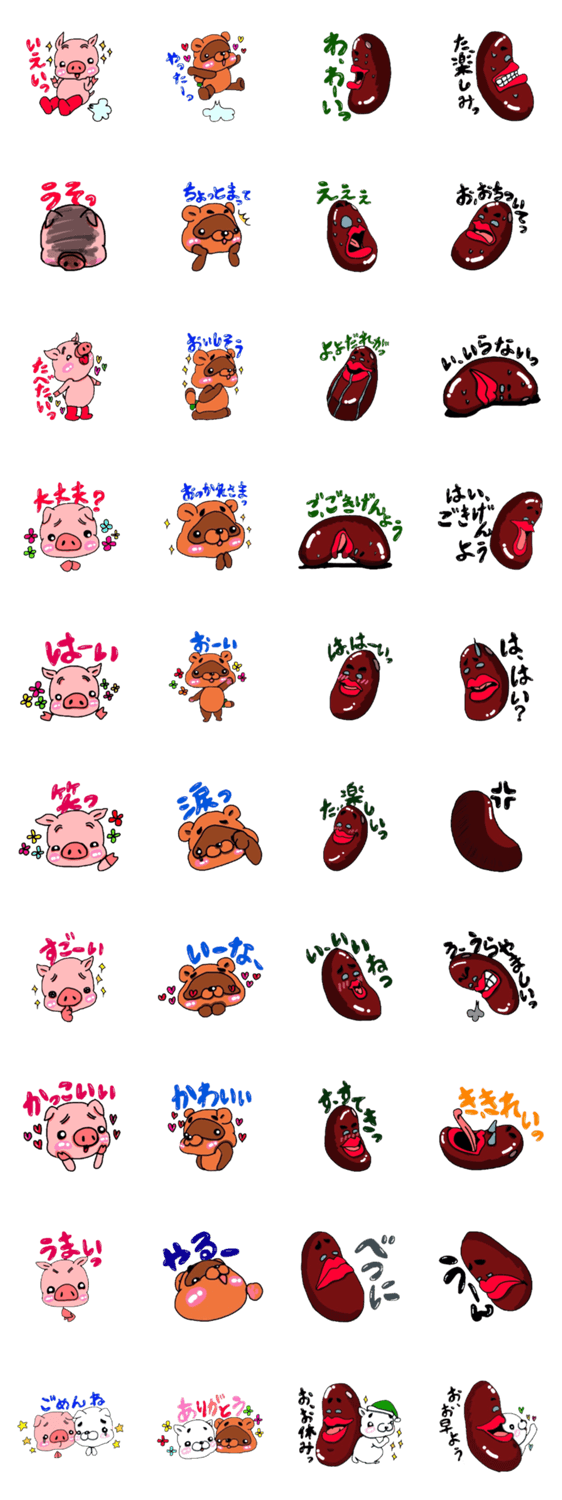 (プルプル)ブタ タヌキ キントキマメ Maru コメントをどうぞ 子豚、子狸、そして北海道産金時豆のスタンプです。 このスタンプどう思う?!↓クリックで投票♪好き (0)かわいい (0)かっこいい (0)おもしろい (0)使いやすそう (0)欲しい (0)萌え (0)ほっこりする (0)おしゃれ (0)ゆるい (0)こわい (0)ウザい (0)キモい (0)ムカつく (0)持ってる (0)癒される (0)セクシー (0)個性的 (0)私は買わない (0)誰かプレゼントして! (0) 購入・プレゼントする Facebookでシェア Twitterでシェア