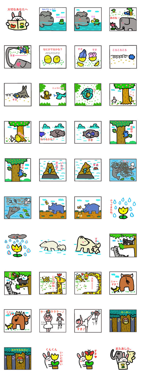 2コマ物語 いろんなすき fuku コメントをどうぞ 2コマを使って絵本のようなスタンプをつくりました。会話や気持ちを伝えるツールとして楽しんでいただけれと思います。 このスタンプどう思う?!↓クリックで投票♪好き (0)かわいい (0)かっこいい (0)おもしろい (0)使いやすそう (0)欲しい (0)萌え (0)ほっこりする (0)おしゃれ (0)ゆるい (0)こわい (0)ウザい (0)キモい (0)ムカつく (0)持ってる (0)癒される (0)セクシー (0)個性的 (0)私は買わない (0)誰かプレゼントして! (0) 購入・プレゼントする Facebookでシェア Twitterでシェア
