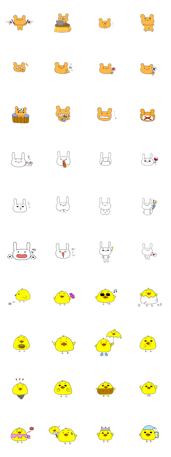 3匹のどうぶつたち① まやりん コメントをどうぞ くまさん、うさちゃん、ひよ子ちゃんのゆる~いスタンプ第一弾。 このスタンプどう思う?!↓クリックで投票♪好き (0)かわいい (0)かっこいい (0)おもしろい (0)使いやすそう (0)欲しい (0)萌え (0)ほっこりする (0)おしゃれ (0)ゆるい (0)こわい (0)ウザい (0)キモい (0)ムカつく (0)持ってる (0)癒される (0)セクシー (0)個性的 (0)私は買わない (0)誰かプレゼントして! (0) 購入・プレゼントする Facebookでシェア Twitterでシェア