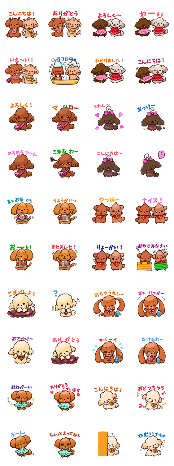7色トイプードル物語 あいさつ編 たじまじ コメントをどうぞ トイプードルの犬スタンプです。可愛いしぐさや関西弁をしゃべったり、日常使いにぜひどうぞ。 このスタンプどう思う?!↓クリックで投票♪好き (0)かわいい (0)かっこいい (0)おもしろい (0)使いやすそう (0)欲しい (0)萌え (0)ほっこりする (0)おしゃれ (0)ゆるい (0)こわい (0)ウザい (0)キモい (0)ムカつく (0)持ってる (0)癒される (0)セクシー (0)個性的 (0)私は買わない (0)誰かプレゼントして! (0) 購入・プレゼントする Facebookでシェア Twitterでシェア