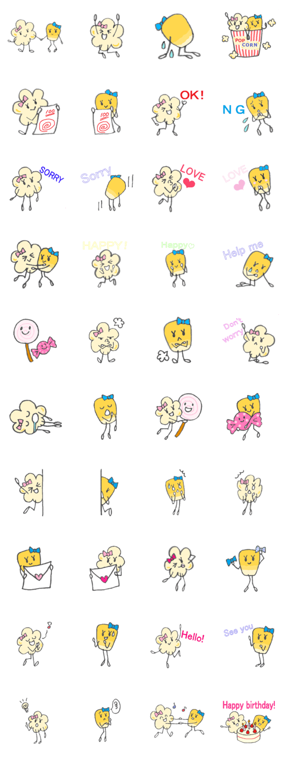 POP & CORN PU-rism コメントをどうぞ Popcornの姉妹、はじけたポジティブなPOPちゃんと少しネガティブなCORNちゃんのスタンプです。考え方は違うけどとっても仲良し姉妹です! このスタンプどう思う?!↓クリックで投票♪好き (0)かわいい (0)かっこいい (0)おもしろい (0)使いやすそう (0)欲しい (0)萌え (0)ほっこりする (0)おしゃれ (0)ゆるい (0)こわい (0)ウザい (0)キモい (0)ムカつく (0)持ってる (0)癒される (0)セクシー (0)個性的 (0)私は買わない (0)誰かプレゼントして! (0) 購入・プレゼントする Facebookでシェア Twitterでシェア