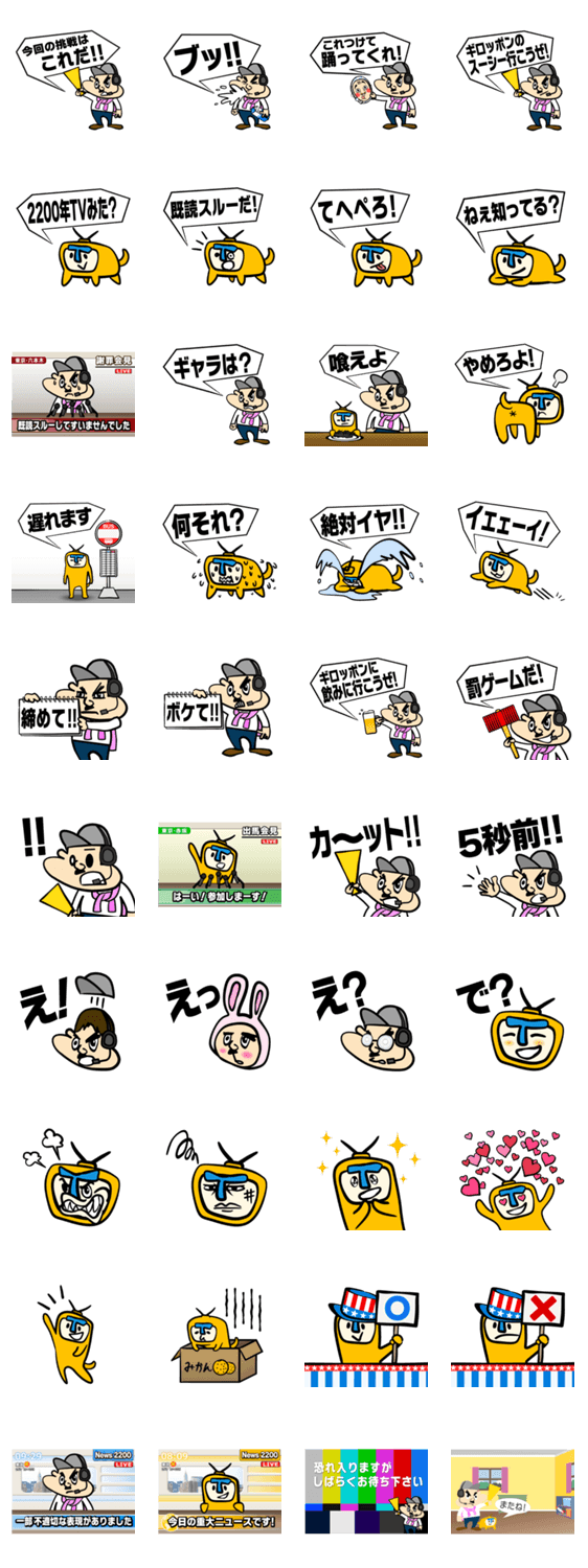 2200年TV 2200年TV コメントをどうぞ YouTubeチャンネル「2200年TV」の公式スタンプです。チャンネルのメインキャラクターである監督くんとテレビくんが遂にLineスタンプに! このスタンプどう思う?!↓クリックで投票♪好き (0)かわいい (0)かっこいい (0)おもしろい (0)使いやすそう (0)欲しい (0)萌え (0)ほっこりする (0)おしゃれ (0)ゆるい (0)こわい (0)ウザい (0)キモい (0)ムカつく (0)持ってる (0)癒される (0)セクシー (0)個性的 (0)私は買わない (0)誰かプレゼントして! (0) 購入・プレゼントする Facebookでシェア Twitterでシェア
