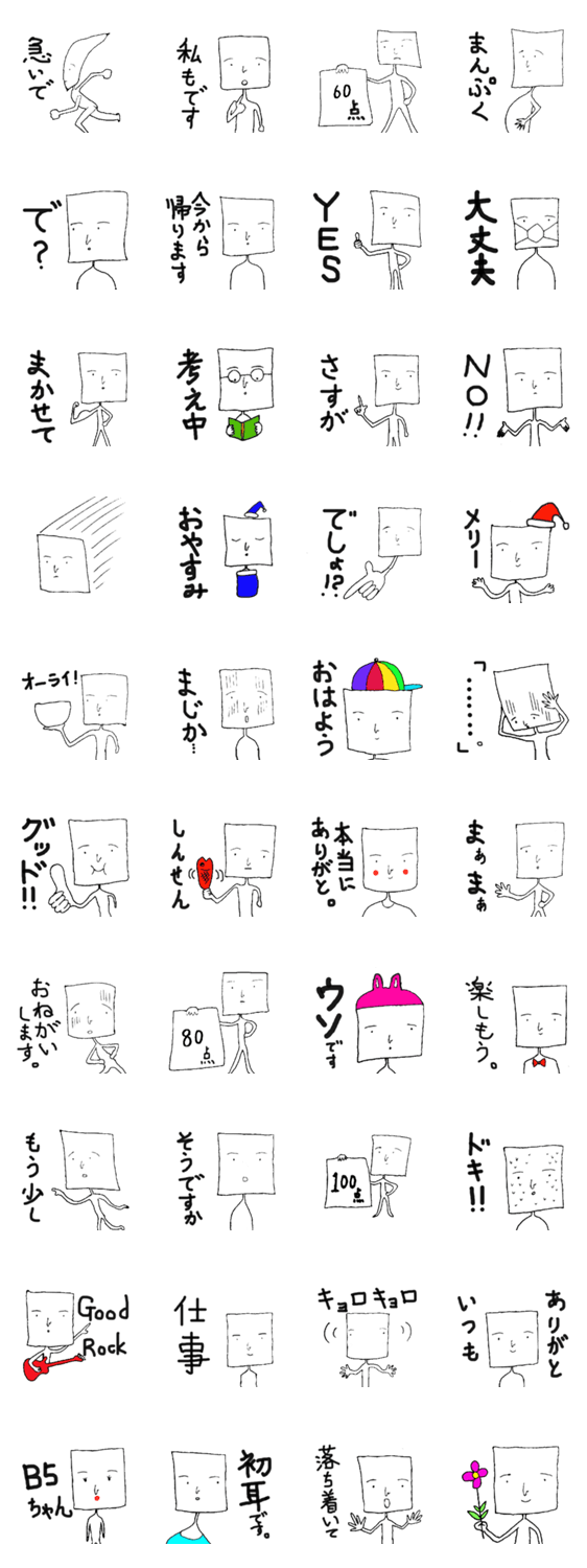 A4君 NODOBOTOKE コメントをどうぞ A4用紙が、人の代わりに日々の思いを伝えるスタンプです。シンプルなので大変使いやすいです。是非お試しください。 このスタンプどう思う?!↓クリックで投票♪好き (0)かわいい (0)かっこいい (0)おもしろい (0)使いやすそう (0)欲しい (0)萌え (0)ほっこりする (0)おしゃれ (0)ゆるい (0)こわい (0)ウザい (0)キモい (0)ムカつく (0)持ってる (0)癒される (0)セクシー (0)個性的 (0)私は買わない (0)誰かプレゼントして! (0) 購入・プレゼントする Facebookでシェア Twitterでシェア