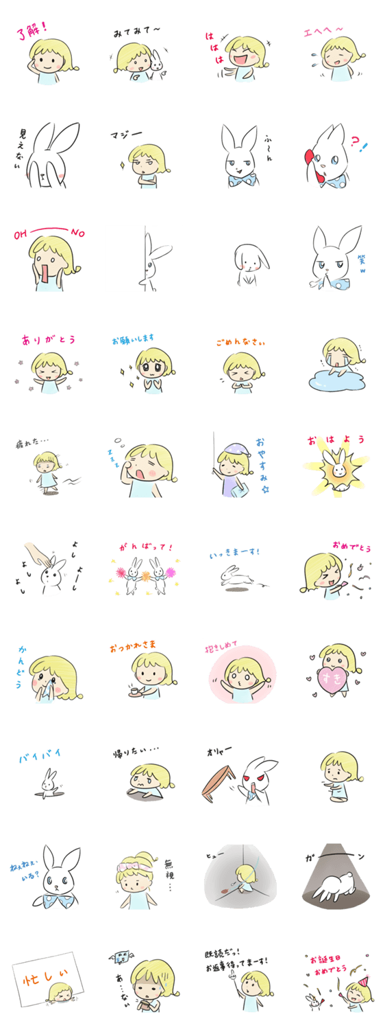 Afan & うさぎめんちゃん Afan's drawing コメントをどうぞ めんちゃんは綿のような白いうさぎ。一緒にレイジーライフしましょう。 このスタンプどう思う?!↓クリックで投票♪好き (0)かわいい (0)かっこいい (0)おもしろい (0)使いやすそう (0)欲しい (0)萌え (0)ほっこりする (0)おしゃれ (0)ゆるい (0)こわい (0)ウザい (0)キモい (0)ムカつく (0)持ってる (0)癒される (0)セクシー (0)個性的 (0)私は買わない (0)誰かプレゼントして! (0) 購入・プレゼントする Facebookでシェア Twitterでシェア